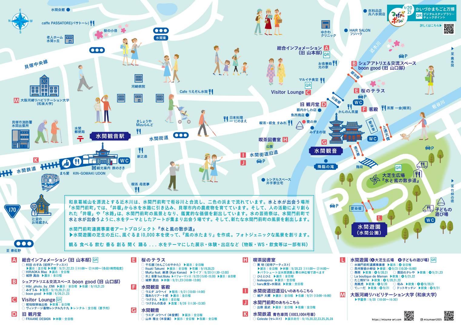 ●水間寺周辺 奈良時代に聖武天皇の命で行基が創設した厄除けで有名な水間寺、境内には縁結びで有名な 恋人の聖地愛染堂がある。 行基ゆかりの「水間寺縁起」、恋愛成就の「お夏清十郎物語」、井原西鶴の「泉州水間利生の銭」といった 歴史的ストーリーが多くある。 水間門前町ではまちづくり法人が古民家を活用したエリアマネジメントに取り組んでいる。 奥水間は、温泉やグランピング施設があり、人気のあるサイクリングコースになっている。 水間鉄道は、開通100周年を迎える地域鉄道、ユーチューバーに紹介され観光資源としても人気